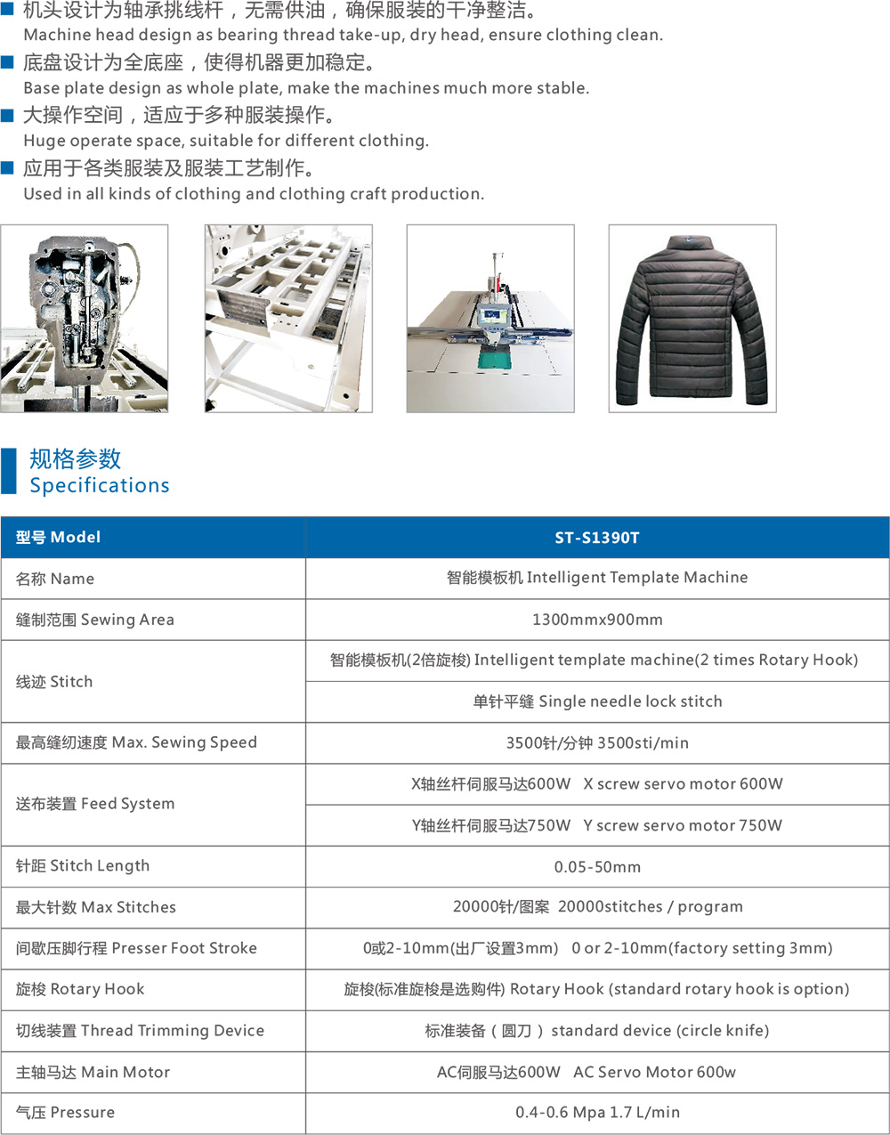 大操作空間,適應于多種服裝操作。